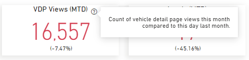 - VDP Views (MTD): VDP (Vehicle Display Page) views this month